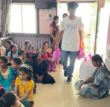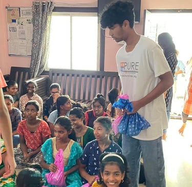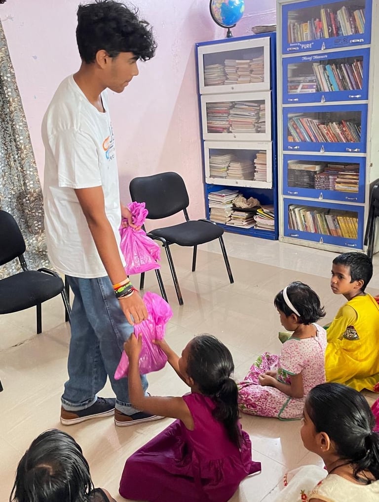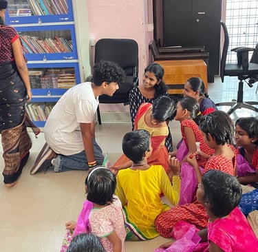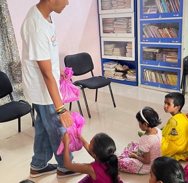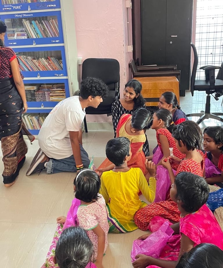 Photographs of our founder, Pranav S, personally distributing board games to underserved students during his recent visit to India.